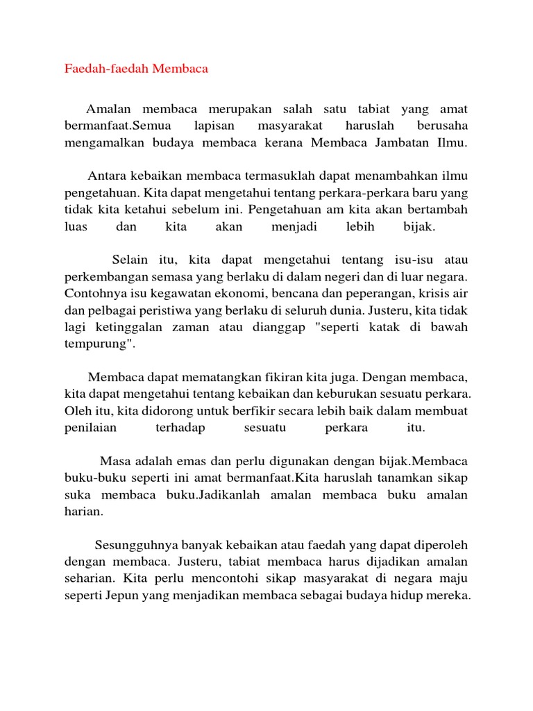 Contoh Karangan Tentang Faedah Perpustakaan
